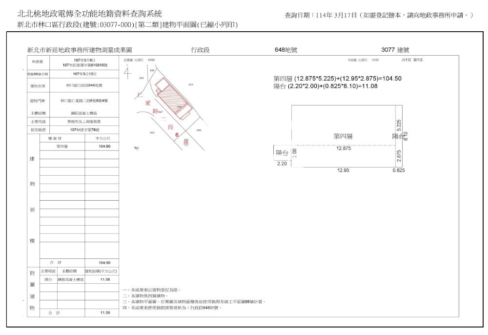 4‧依建物登記謄本所示,行政段3077建號建物之主要用途為事務所及工商服務業,建築完成日期為107年3月2日,謹供應買人參考。
