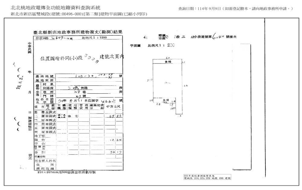 3‧另經新北市新店地政事務所114年5月19日新北店地登字第1146106812號、114年6月5日新北店地登字第1146107718號函覆,496建號建物屬區分所有建物,其移轉登記應受民法第799條第5項「專有部分與其所屬之共有部分及其基地之權利,不得分離而為移轉或設定負擔。」、公寓大廈管理條例第4條第2項「專有部分不得與其所屬建築物共用部分之應有部分及其基地所有權或地上權之應有部分分離而為移轉或設定負擔。」之限制。本件標的雙城段248、250、250-1、294、294-1、294-2、294-3、306、314、325、326地號及安泰段2、3、100、100-1、101、101-1、101-2、101-3、106地號土地應依上開規定併同移轉。